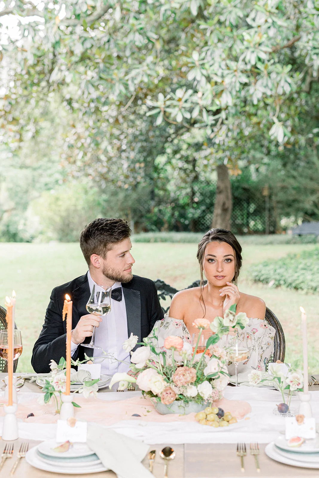 This year has thrown many couples up in the air from their original wedding plans. Zach and Fallon were one of the many couples that missed out on having the large wedding they have always envisioned. Their photographer, Andi Bravo, flew specifically out from Tusla Oklahoma to Richmond Virginia to photograph this couple to ensure they still had the wedding images of their dreams. Enjoy this romantic timeless styled shoot that many creative vendors put together for the now married Zach and Fallon.